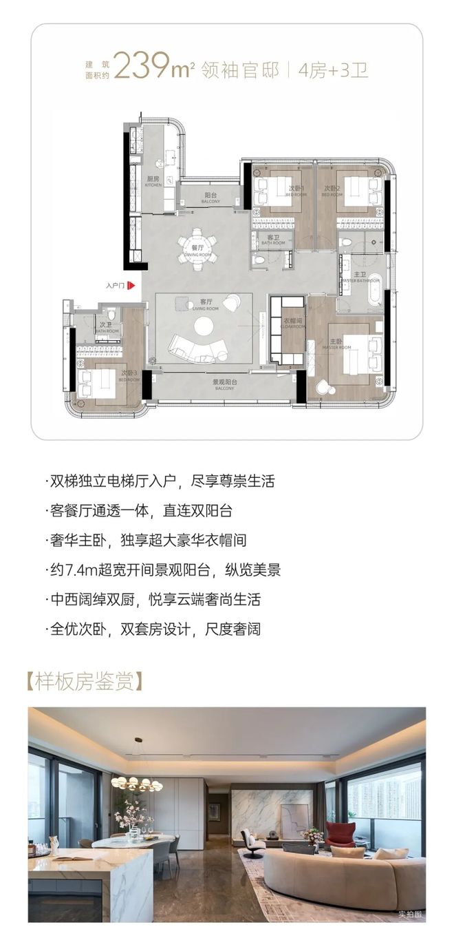 约6.7m双开间观景超大阳台可开可合中西餐厨+岛台设计主卧设大拐角飘窗,户型通透,客餐厅7.9m进深全优卧室产品,尊享舒适进深多功能+1空间灵活多变。