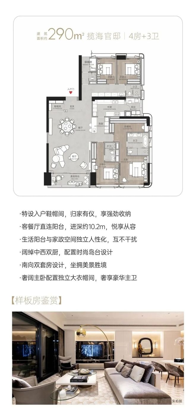 南北双阳台:约6.7m双开间观景超大阳台,户型通透,客餐厅7.9m进深,可开可合中西餐厨+岛台设计
